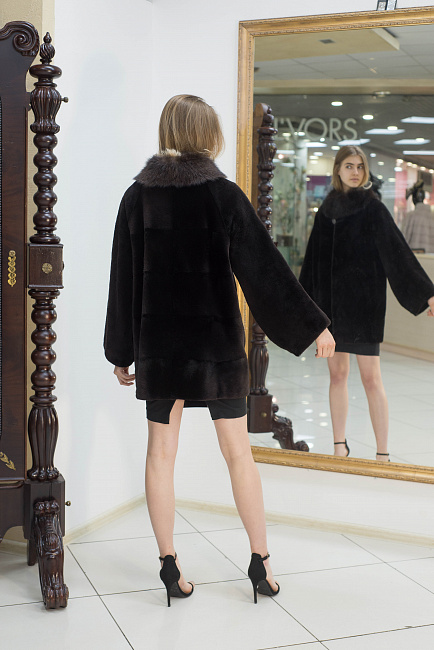 Воротник стойка из меха фишера, рукав реглан, силуэт прямой