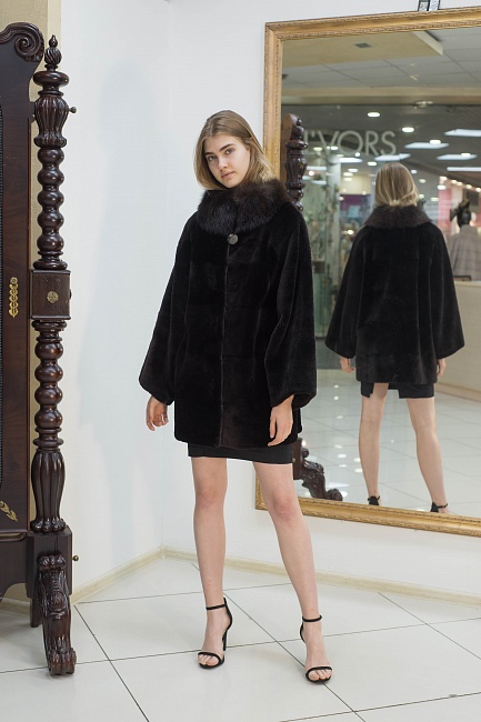 Воротник стойка из меха фишера, рукав реглан, силуэт прямой