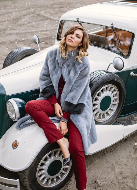 Изысканное пальто для тех, кто покупает не просто одежду, а вещь с историей. Дизайнерская находка - изящная бабочка на шубке - понравится ценителям эксклюзивности. Великолепный мех северо-американской норки красивого серого цвета освежит Ваш зимний гардероб.