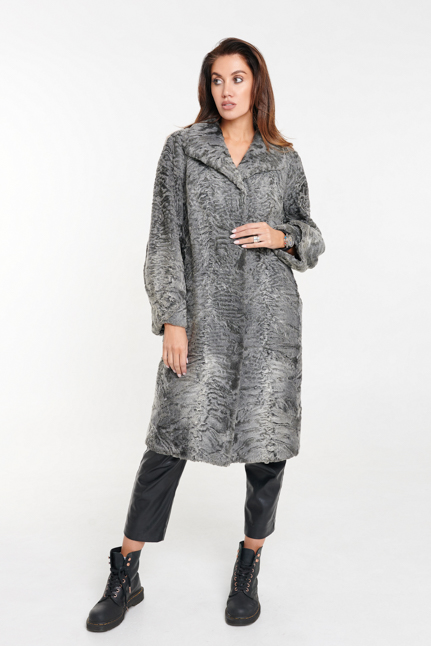 Пальто из каракуля, воротник апаш, рукав втачной, силуэт трапеция.
