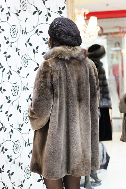 Воротник стойка из меха фишера, рукав втачной, силуэт прямой