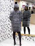 Пальто из меха каракуля без воротника, рукав втачной укороченный, силуэт прямой, поперечная раскладка меха.