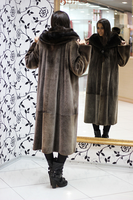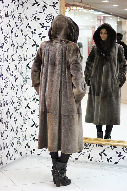 Капюшон из меха норки, рукав втачной, силуэт трапеция