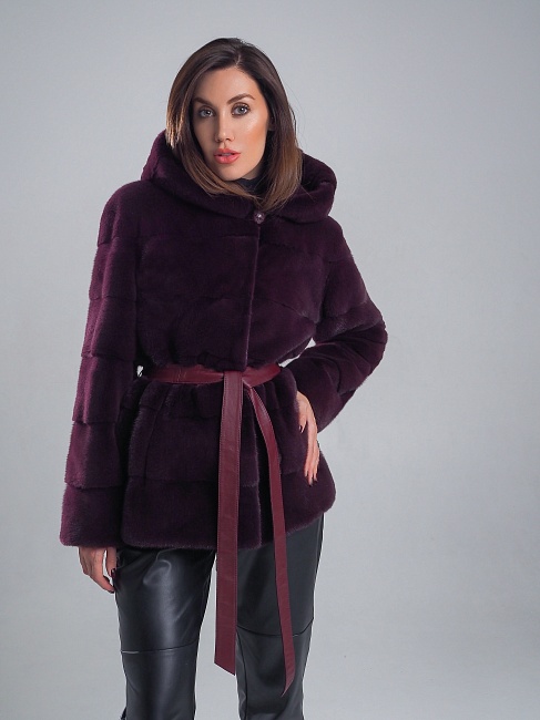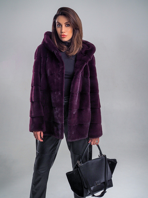 Куртка с капюшоном из меха норки, рукав втачной, силуэт прямой.