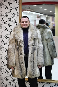 Мужская куртка из меха бобра, воротник отложной, рукав втачной.