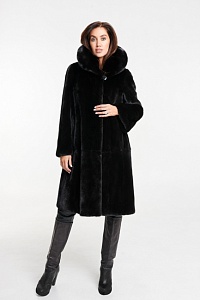Воротник стойка из меха фишера, рукав реглан, силуэт прямой