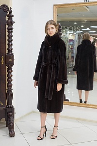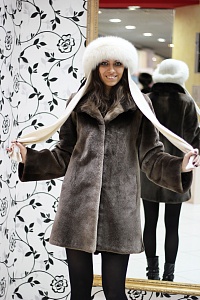 Воротник стойка из меха норки, рукав втачной, силуэт трапеция
