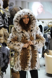 Куртка с капюшоном, рукав летучая мышь, V- образная раскладка меха.