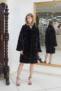 Воротник стойка из меха норки, рукав втачной, силуэт трапеция