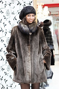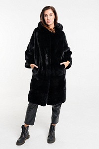 Капюшон из меха норки, рукав втачной, силуэт трапеция