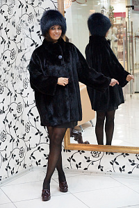 Воротник стойка из меха норки, рукав втачной, силуэт прямой