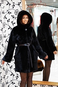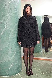 Куртка из каракуля с капюшоном, рукав втачной, силуэт прямой.