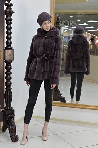 Куртка с капюшоном из меха норки, рукав втачной, силуэт прямой.