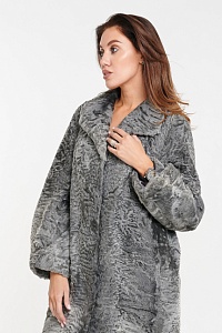 Пальто из каракуля, воротник апаш, рукав втачной, силуэт трапеция.