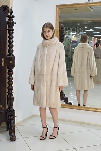 Воротник стойка из меха норки, рукав втачной, силуэт трапеция