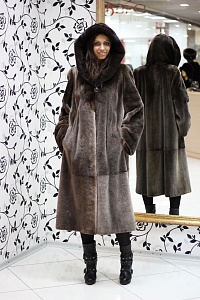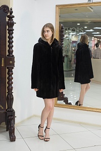 Капюшон из меха норки, рукав втачной, силуэт трапеция