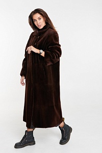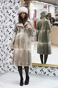 Воротник стойка из меха норки, рукав втачной, силуэт трапеция